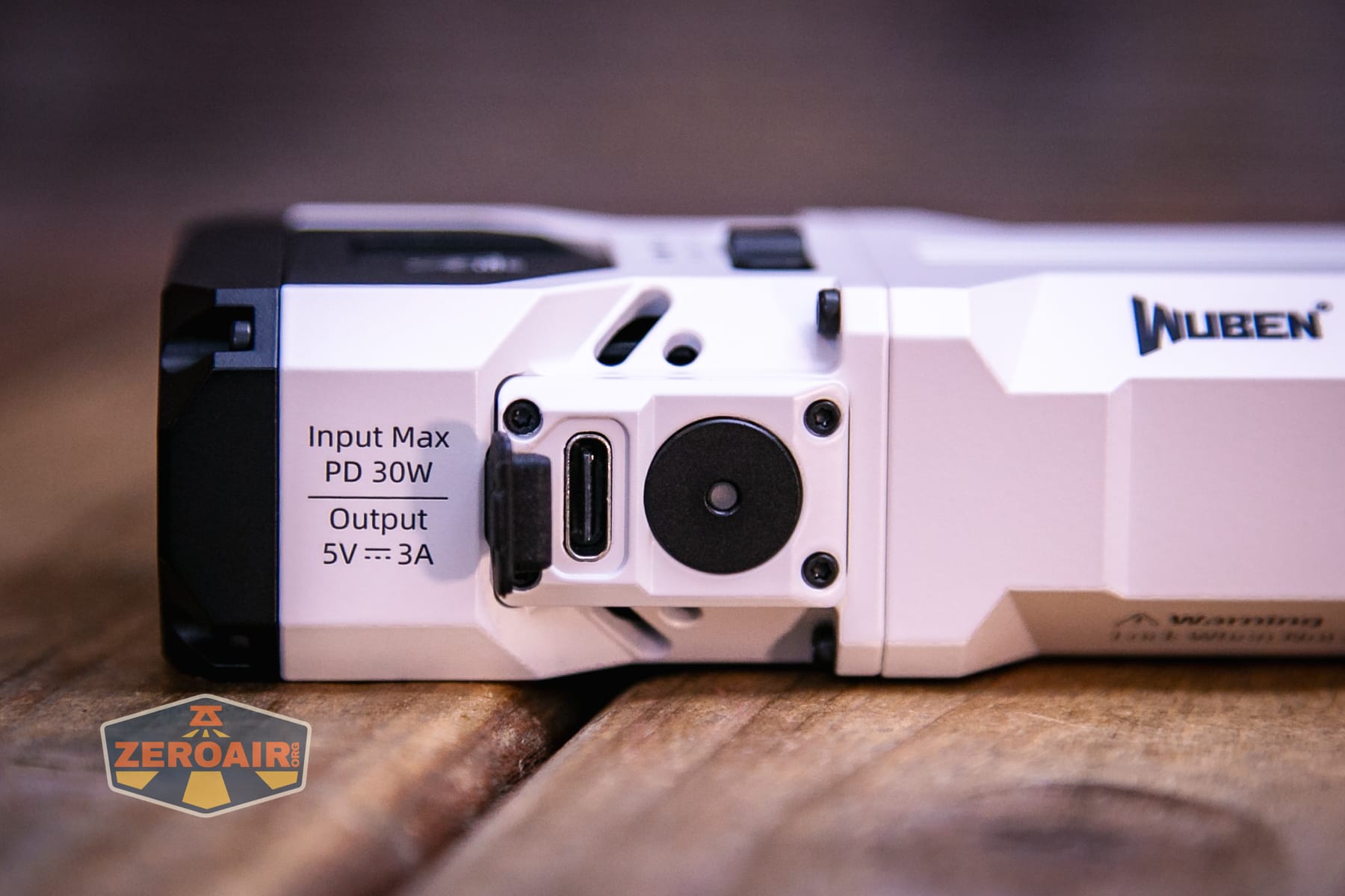 The Wuben X1 Professional 2 flashlight has on-board charging. There’s a USB-C port on the pinnacle.